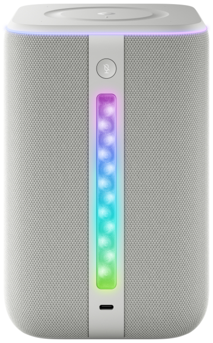 Для питания используется адаптер (через USB-C/PD), а встроенная подсветка и дисплей добавляют визуальную атмосферу: свет и информация отображаются прямо на корпусе, что повышает комфорт в домашней обстановке. Сенсорная панель помогает управлять колонкой вручную, если голос недоступен. Устройство рассчитано на питание от сети — автономный аккумулятор не предусмотрен.